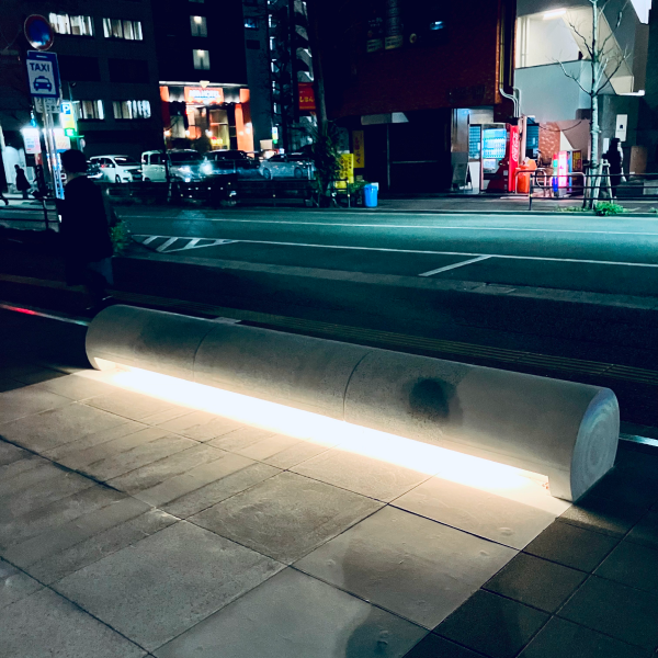 あえてベンチっぽくせず、人が座っていない時はオブジェのようになり、建物と馴染みます。